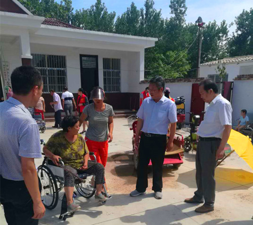 中華龍都網(wǎng)訊(周口報業(yè)全媒體記者 張猛 通訊員 侯衛(wèi)莊)6月29日上午,西華縣政協(xié)主席郭峰、副主席唐金華帶領經(jīng)濟界、工商聯(lián)界委員和殘聯(lián)及愛心商家,到西華營鎮(zhèn)鋪李村慰問貧困群眾、捐贈愛心物資。
