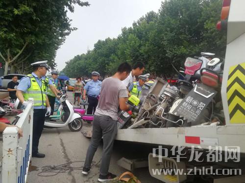 中華龍都網(wǎng)訊 (周口報(bào)業(yè)全媒體記者 姬慧洋 陳永團(tuán) 文/圖)清理違停非機(jī)動(dòng)車、拖走僵尸車、向違停違章機(jī)動(dòng)車輛開出罰單……7月5日,我市中心城區(qū)交通秩序整治“百日行動(dòng)”首出重拳,對(duì)市民深惡痛絕的幾種交通亂象進(jìn)行治理,拖走非機(jī)動(dòng)車輛76輛,清理“僵尸車”2臺(tái),對(duì)多臺(tái)違停車輛進(jìn)行處罰。