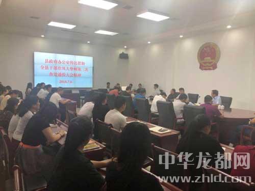 中華龍都網(wǎng)訊(周口報(bào)業(yè)全媒體記者李瑞才 通訊員 普德連)7月6日下午,鹿邑縣政府辦公室召開會(huì)議,傳達(dá)貫徹全縣干部作風(fēng)大整頓第三次查處通報(bào)和創(chuàng)文創(chuàng)衛(wèi)會(huì)議精神。要求全體黨員干部要提高政治站位,樹立責(zé)任意識(shí),增強(qiáng)使命觀念,對(duì)標(biāo)整改;要敢擔(dān)當(dāng),真干事,干實(shí)事,工作落實(shí)到位不走樣,以實(shí)際工作成績(jī)檢驗(yàn)作風(fēng)紀(jì)律整頓效果。