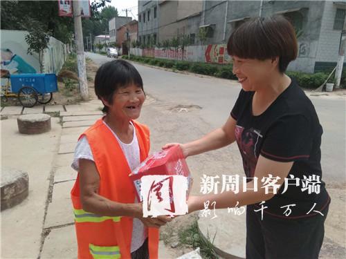 上午10時許,欣中基清潔公司經(jīng)理張志宏來到邵寨行政村。看到路面干干凈凈,她很高興。除了例行巡視,張志宏此行還有一項任務(wù):向每位保潔員發(fā)放一件飲料?!疤鞖獬掷m(xù)高溫,保潔員們露天辛勤勞動,給村民們創(chuàng)造了良好的生活環(huán)境。因此,公司決定開展慰問活動?!苯舆^飲料,邵天錄等6名保潔員滿臉笑容地連聲道謝。