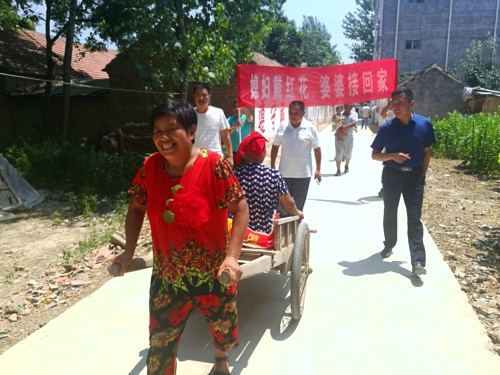 “好政策,好媳婦,好好好……”婆婆給兒媳婦戴上大紅花,兒媳婦高高興興地將公公、婆婆從村頭小屋接到自己家居住,村頭小屋立即拆除。7月21日,烈日如火,在鄲城縣汲水鄉(xiāng)押嶺行政村、小劉莊行政村,12戶好媳婦比孝順,先后把自家公公婆婆接到自己寬敞的大房子,公公婆婆臉上樂開了花。