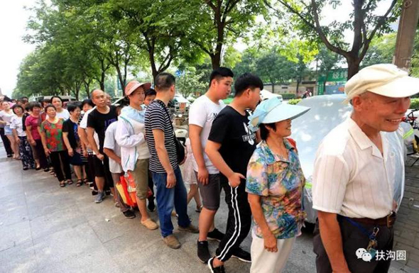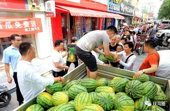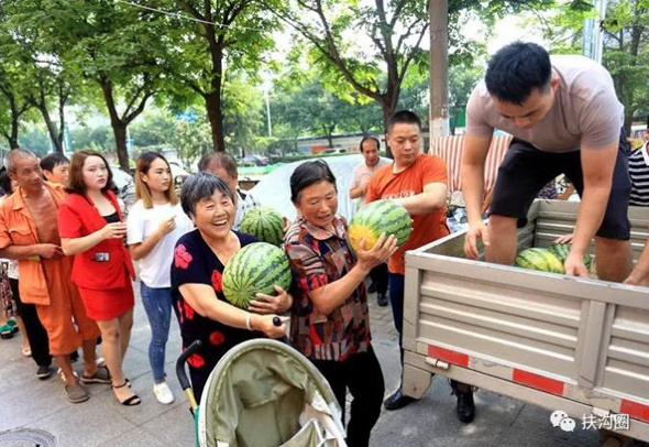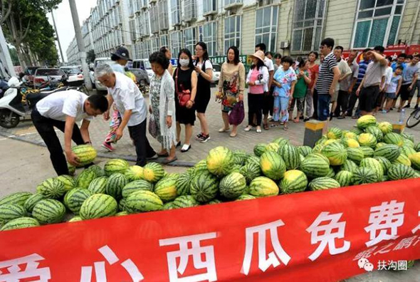鄭州市民排著長(zhǎng)長(zhǎng)的隊(duì)伍領(lǐng)取免費(fèi)愛心西瓜,來自咱扶溝的宋鐵托做了一件感動(dòng)家鄉(xiāng)人小事,而這件小事卻上了《人民日?qǐng)?bào)》。