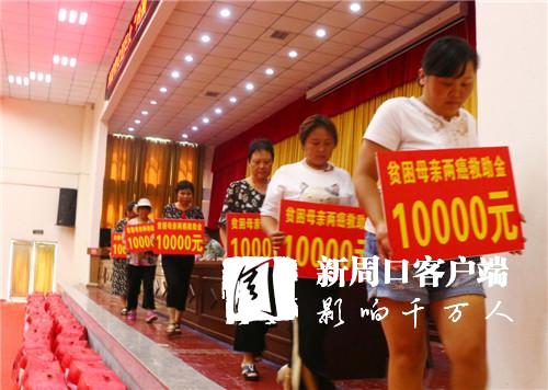 來自唐集鄉(xiāng)王莊村的吳鳳芝拿到一萬元救助金后激動不已,連稱:“謝謝黨委、政府,謝謝婦聯(lián)對我們的關(guān)愛……” 據(jù)了解,自河南省婦聯(lián)實(shí)施“兩癌”貧困婦女救助項目以來, 鹿邑縣婦聯(lián)積極組織,通過鄉(xiāng)鎮(zhèn)婦聯(lián)對全縣26個鄉(xiāng)鎮(zhèn)的貧困“兩癌”患者進(jìn)行摸底和檔案審核,并通過中國婦女網(wǎng)為符合條件的“兩癌”貧困婦女申請救助。截止目前,鹿邑縣婦聯(lián)共向上申請救助金23萬元,救助23名貧困“兩癌”患者,今天得到救助的6名貧困母親每人將獲得1萬元的資金救助。
