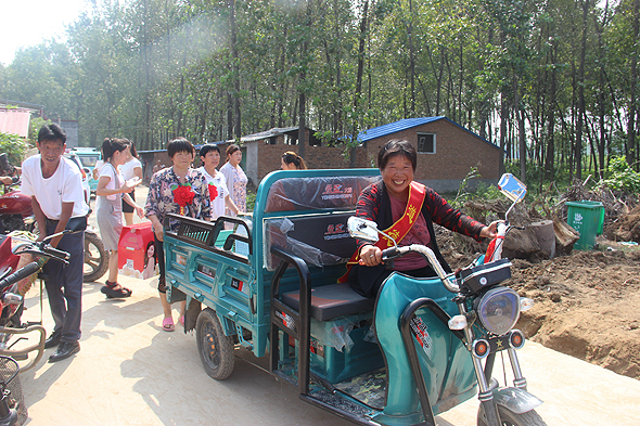 在鄉(xiāng)村振興中,商水縣郝崗鎮(zhèn)大張旗鼓地對評選出的6名“好婆婆”、15名“好媳婦”、8戶“孝賢之家”、582戶“十星級文明戶”進(jìn)行表彰,旨在在全鎮(zhèn)樹立文明新風(fēng)導(dǎo)向,傳播孝老敬老、誠實守信理念。圖為8月22日,剛剛受到表彰的西黃村“好媳婦”郝愛榮滿面春風(fēng)地行駛在鄉(xiāng)間道路上。
