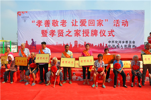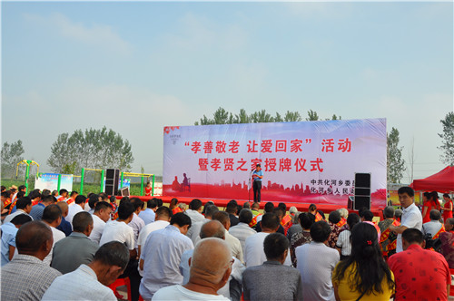 8月30日上午,化河鄉(xiāng)“孝善敬老 讓愛回家”活動暨孝賢之家授牌儀式在該鄉(xiāng)高老村文化廣場舉行??h委常委、統(tǒng)戰(zhàn)部長李遠(yuǎn)富、副縣長何海中、縣工會主席盧紅兵應(yīng)邀出席?;余l(xiāng)黨政班子和近千群眾參加了活動儀式。
