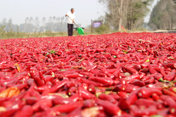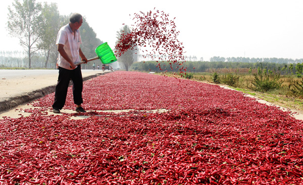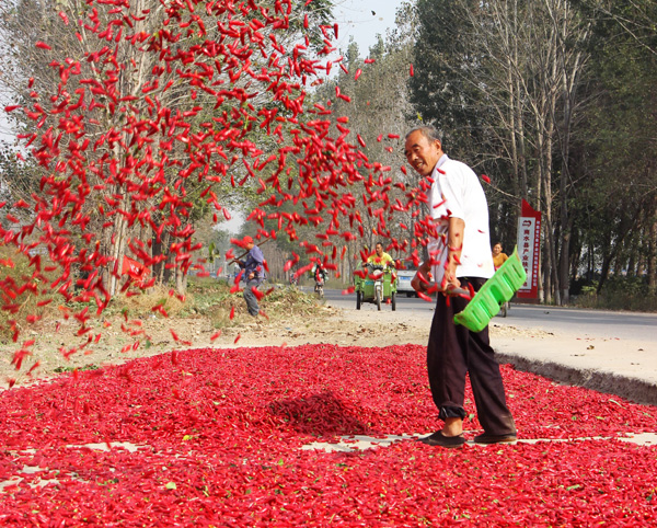 近年來,商水縣郝崗鎮(zhèn)大力實施辣椒產(chǎn)業(yè)扶貧,通過黨員干部帶動、結對貧困戶扶持發(fā)展,種植萬畝以上小辣椒,實現(xiàn)畝效益3000元以上,促進了群眾增收致富。圖為昨日上午,該鎮(zhèn)西洄行政村農(nóng)民正在晾曬小辣椒。