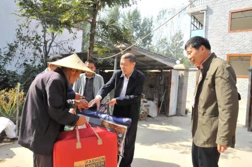 為進(jìn)一步弘揚(yáng)中華民族敬老、愛老、助老的優(yōu)良傳統(tǒng)美德,讓結(jié)隊幫扶村——太康縣王集鄉(xiāng)李小橋行政村90歲及以上老人過一個溫馨又和諧的重陽佳節(jié),10月12日,周口市稅務(wù)局黨委委員、副局長徐平烽,黨委委員、總會計師李霞,黨委委員、總經(jīng)濟(jì)師張振祥等在對全村9名高齡老人進(jìn)行了走訪慰問,為老人們送上節(jié)日的祝福和價值近2000元的慰問品。