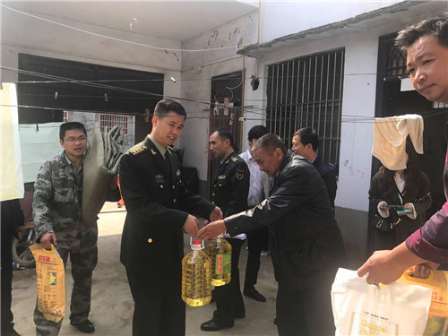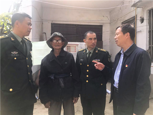 當(dāng)日上午,川匯區(qū)武裝部一行和愛(ài)心企業(yè)“佳麗地產(chǎn)”黃經(jīng)理一行到中心城區(qū)城南辦事處走訪了90歲抗戰(zhàn)老兵王四海。王四海1948年參軍入伍,隨部隊(duì)一同南征北戰(zhàn),參加解放海南島等戰(zhàn)役。同時(shí),他們還慰問(wèn)了參加對(duì)越自衛(wèi)反擊戰(zhàn)的62歲老兵李士明等幾名貧困群眾,為他們送去了米面糧油、軍被等慰問(wèn)品。