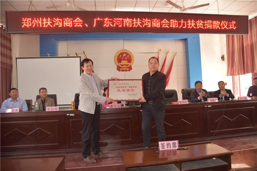 致富思源,反哺故里;捐資幫扶,回報家鄉(xiāng)。10月19日上午,鄭州扶溝商會會長翟德峰、廣東省河南扶溝商會會長鄒四紅回到扶溝,為家鄉(xiāng)脫貧攻堅事業(yè)不僅“雪中送炭”,送來捐助的善款,而且“錦上添花”,與貧困村簽訂了結(jié)對幫扶協(xié)議。
