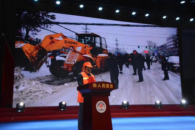 隨后,獲獎環(huán)衛(wèi)工代表戴著大紅花走上主席臺,接受西華縣委書記林鴻嘉的頒獎?!翱h委對城市管理特別是環(huán)衛(wèi)工人們的辛苦、辛勞看在眼里、記在心里,在財力十分緊張的情況下,連續(xù)5年為環(huán)衛(wèi)工人普漲工資,每人每月增加100元。今天,我宣布:從明年元月開始,給環(huán)衛(wèi)工人再增加100元的工資?!绷著櫦魏榱恋脑捯魟偮?,臺下就爆發(fā)出長時間的掌聲,有些環(huán)衛(wèi)工人一邊鼓掌一邊流淚,幸福的淚花在眼圈里打轉(zhuǎn)。
