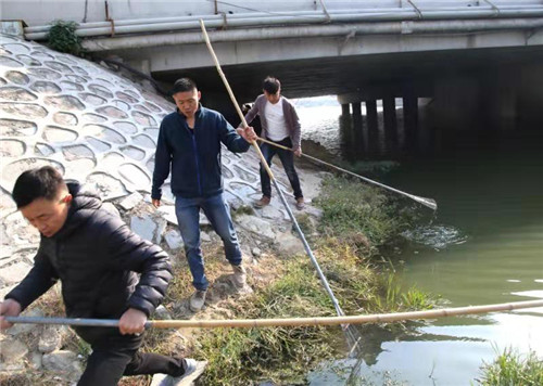 志愿者們被分成3隊,隊員們步行沿著鹿辛運河沿岸開始打撈活動。在靠近紅衛(wèi)橋河岸附近的地方,記者看到,志愿者們拿起手中的打撈工具,不停打撈著河邊漂浮的朔料、礦泉水瓶、紙盒箱等垃圾。女志愿者則拿著垃圾分裝大袋,不怕臟、不怕累的跟著志愿者隊伍前行。