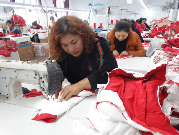 11月11日,沈丘縣周營鎮(zhèn)慧恩服飾來料加工點,當地十幾名留守“巧媳婦”正忙著加工訂單兒童冬季服裝。
