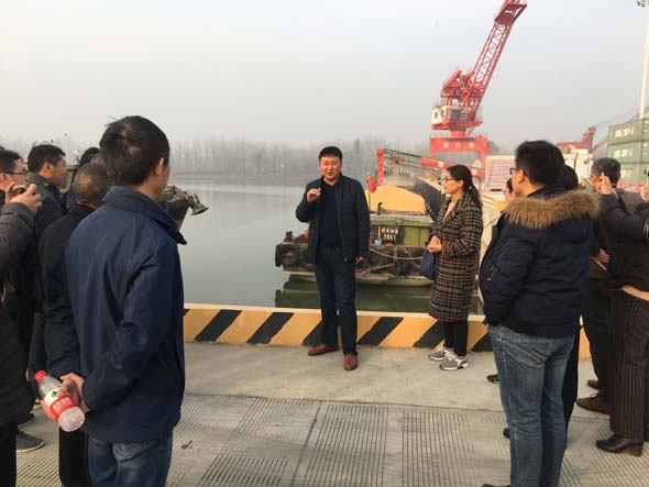 11月24日下午,周口師范學(xué)院黨委統(tǒng)戰(zhàn)部部長張建夫帶領(lǐng)由60名專家學(xué)者、教授組成的專家團(tuán),到周口中心港碼頭考察。港區(qū)黨委委員張東立,市百城辦聯(lián)絡(luò)人顧家毫陪同。