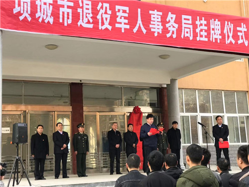 11月27日,項(xiàng)城市退役軍人事務(wù)局掛牌成立。市委書記劉昌宇為市退役軍人事務(wù)局成立揭牌。市四個(gè)班子和人武部領(lǐng)導(dǎo)、市直各部委副職及政府工作部門主要負(fù)責(zé)人出席掛牌儀式。市委副書記張文成主持儀式。市委常委、常務(wù)副市長張森講話。