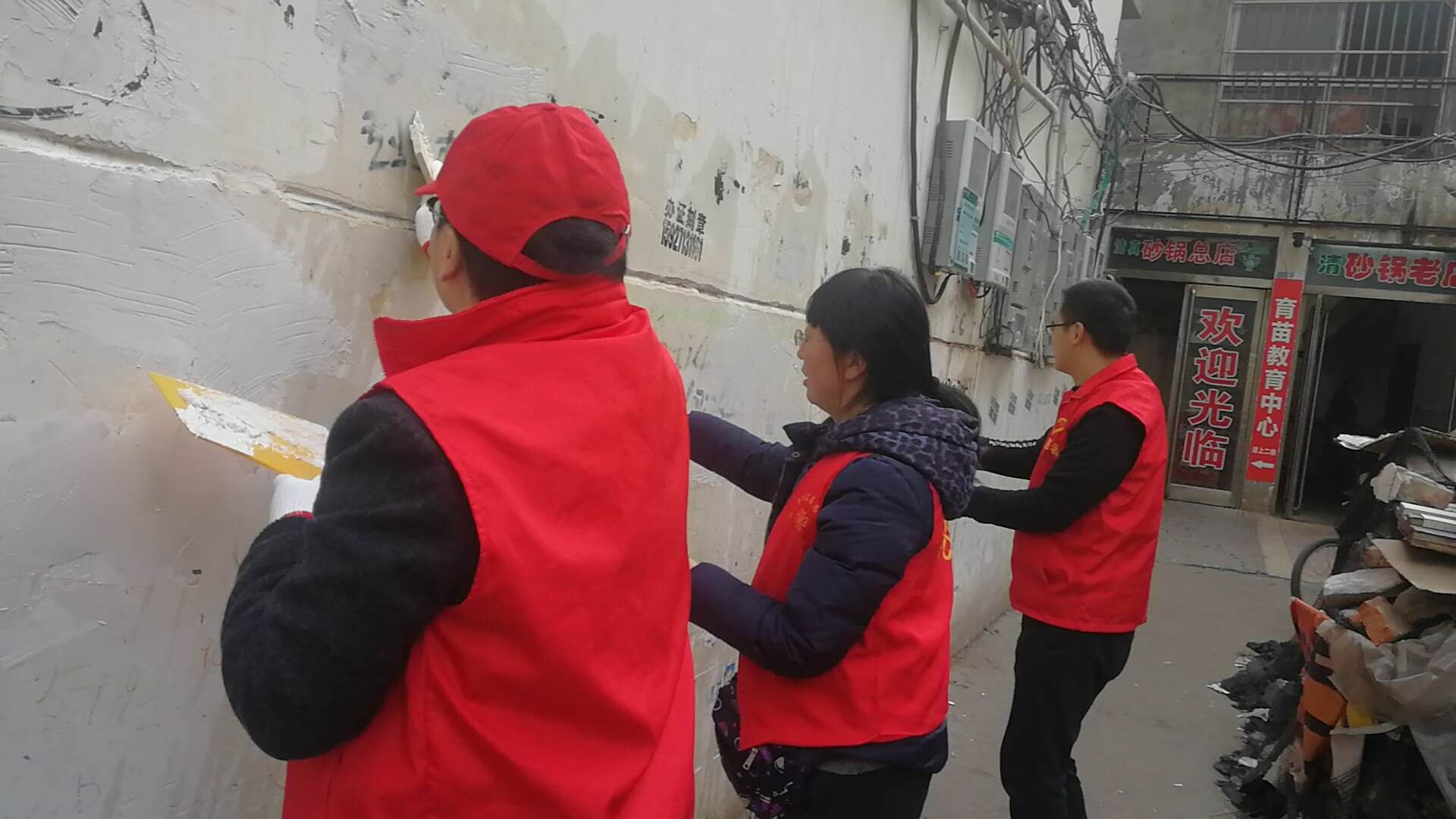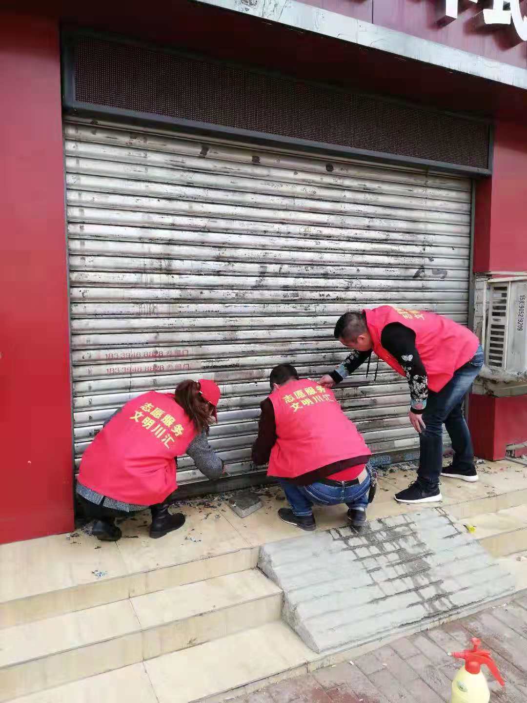 作為城市管理和市容環(huán)境整治的“主戰(zhàn)場”,川匯區(qū)自11月起設(shè)立“市容工作日”,進(jìn)一步深化“五城聯(lián)創(chuàng)”工作,切實改善中心城區(qū)面貌。11月27日,“市容工作日”活動正式啟動,川匯區(qū)各單位紛紛組織志愿者走上街頭,在各自轄區(qū)開展小廣告清理等環(huán)境綜合整治工作。圖一為志愿者粉刷布滿小廣告的建筑物外墻。圖二為志愿者清理地面上的小廣告。圖三為志愿者清理卷閘門上的小廣告。