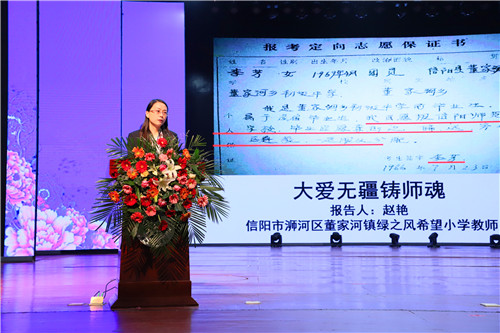 報(bào)告會(huì)上,李芳的同事綠之風(fēng)希望小學(xué)教師趙艷、李芳的老師信陽職業(yè)技術(shù)學(xué)院語言傳媒學(xué)院教師熊可書、李芳的女兒代雨辰和信陽市浉河區(qū)委宣傳部新聞中心記者劉亞迪分別以《大愛無疆鑄師魂》,《那是青春吐芳華》,《有媽媽的地方處處是溫暖》,《大別山上映山紅》為題,深情講述李芳同志一心想著學(xué)生,全身心投入教育工作,扎根鄉(xiāng)村獻(xiàn)身教育事業(yè)的點(diǎn)點(diǎn)滴滴,詮釋了李芳同志不忘初心、潛心育人、敬業(yè)奉獻(xiàn)、舍生忘我的高尚品德和優(yōu)秀品質(zhì),為與會(huì)者帶來了一場(chǎng)感人肺腑的報(bào)告會(huì)。