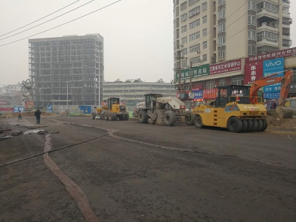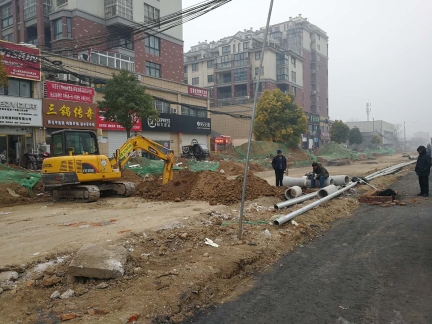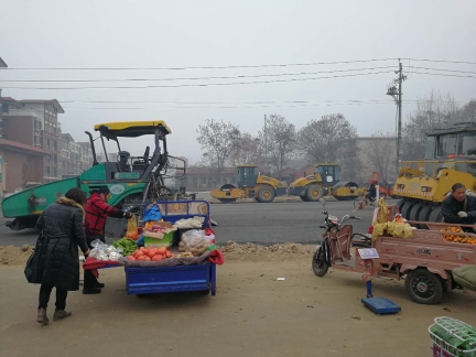 記者今日走訪漢陽(yáng)路中段(穎河路-建設(shè)路)看到,目前該路段機(jī)動(dòng)車道已鋪上黑色的混凝土物質(zhì),人行道則是壓實(shí)過的土路。壓路機(jī)等設(shè)備??吭诘缆穬深^,并未啟動(dòng),有兩臺(tái)挖掘機(jī)及數(shù)十名工人在人行道上,鋪設(shè)下水道。施工路段內(nèi),有不少菜販在沿街叫賣。