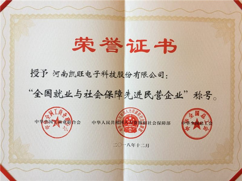 12月20日上午,記者獲悉在全國召開的就業(yè)與社會保障先進民營企業(yè)暨關愛員工實現(xiàn)雙贏表彰大會上,我市民營企業(yè)河南凱旺電子科技股份有限公司榮獲“全國就業(yè)與社會保障先進民營企業(yè)”稱號,中華全國工商業(yè)聯(lián)合會、中華人民共和國人力資源和社會保障部、中華全國總工會為該企業(yè)頒發(fā)了榮譽證書。