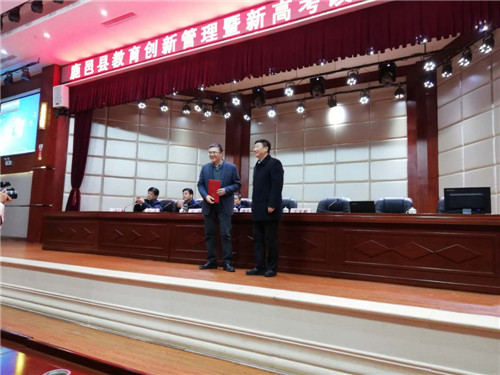 12月26日,鹿邑縣召開(kāi)教育創(chuàng)新管理暨新高考改革專(zhuān)家報(bào)告會(huì)??h委副書(shū)記、縣長(zhǎng)李剛為報(bào)告會(huì)致辭,勉勵(lì)全縣教育工作取得新突破。縣委常委、縣委辦主任宋濤主持會(huì)議。副縣長(zhǎng)王玉超為全國(guó)高考命題理科組組長(zhǎng)、原上海虹口區(qū)教育局局長(zhǎng)、同濟(jì)大學(xué)理學(xué)博士常生龍局長(zhǎng)頒發(fā)"鹿邑縣教育提質(zhì)特聘專(zhuān)家"證書(shū),會(huì)議還對(duì)全縣教育工作者作專(zhuān)題講座。