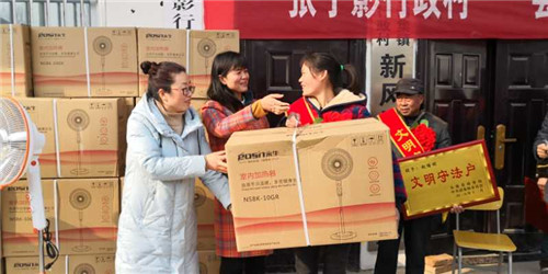 太康縣商務(wù)局為38戶受表彰的先進家庭頒發(fā)了獎牌和價值300元的電熱扇。