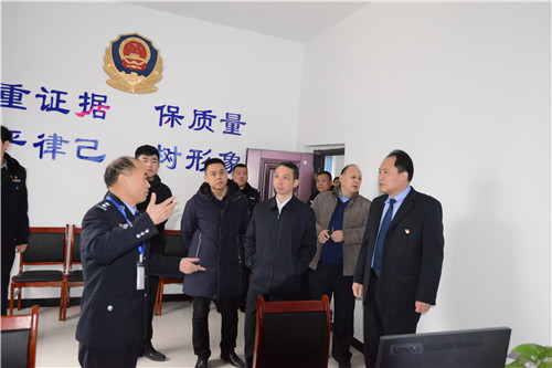 調(diào)研組一行深入鹿邑縣公安局新辦公業(yè)務用房工地、執(zhí)法辦案中心、高集派出所新址等處實地調(diào)研基層建設工作。鹿邑縣副縣長、縣公安局長何新敏介紹了2018年鹿邑公安整體工作以及高質(zhì)量公安建設有關情況。
