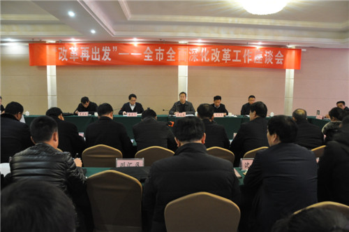 1月9日,“改革再出發(fā)”— 全市全面深化改革工作座談會在商水召開。會議對40年全市改革開放取得的顯著成績和變化進行暢談式總結(jié)回顧,對今后一個時期深化改革工作進行相互啟發(fā)式思考謀劃。