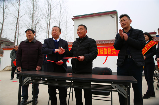 崗趙村是周口市行政服務(wù)中心幫扶的貧困村。去年11月份,駐村第一書記李文杰得知西華廈農(nóng)商村鎮(zhèn)銀行已開始在村一級評定設(shè)立“鄉(xiāng)村振興示范點”,立即與該行負責(zé)人取得聯(lián)系、積極溝通。銀行方面經(jīng)過認真考察,最終確定在崗趙“設(shè)點”。25日在崗趙村部舉行的授牌授信儀式上,西華縣人民銀行有關(guān)負責(zé)人為崗趙村授予“鄉(xiāng)村振興示范點”牌匾,西華廈農(nóng)商村鎮(zhèn)銀行負責(zé)人與崗趙村負責(zé)人簽訂了授信協(xié)議書。周口市行政服務(wù)中心和葉埠口鄉(xiāng)政府負責(zé)人都熱情致辭,百余名村民代表見證了這一激動人心的時刻。準備做早餐生意的村民趙合成說:“咱農(nóng)民貸款也不用再跑冤枉路、花冤枉錢,這個‘點’設(shè)得真中!”