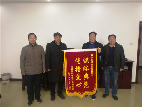 “傳播愛心,媒體典范”“為民解憂愁,心系千萬(wàn)家”。1月25日上午,淮陽(yáng)縣劉振屯鄉(xiāng)張老家行政村村支書張紀(jì)全專程趕到周口,給周口報(bào)業(yè)傳媒集團(tuán)、周口市啄木鳥志愿者服務(wù)工作委員會(huì)送來(lái)兩面錦旗,表達(dá)他們的感激之情(如圖)。