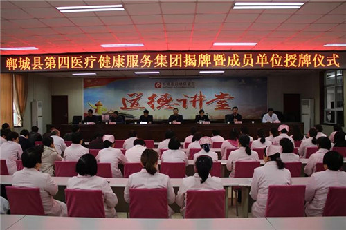 楊軍宣讀了《鄲城縣第四醫(yī)療健康服務(wù)集團(tuán)關(guān)于成立全面推進(jìn)醫(yī)療健康服務(wù)共同體建設(shè)領(lǐng)導(dǎo)小組的通知》,王斌宣讀了《鄲城縣第四醫(yī)療健康服務(wù)集團(tuán)關(guān)于成立醫(yī)療健康服務(wù)共同體醫(yī)院的通知》。第四醫(yī)療健康服務(wù)集團(tuán)成員單位寧平鎮(zhèn)衛(wèi)生院院長許向東作代表發(fā)言。