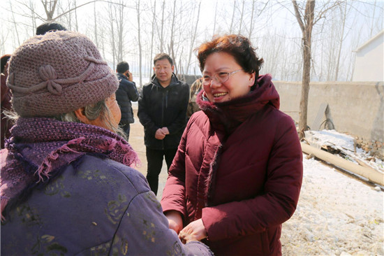 2018年5月11日,張穎波在看望大新鎮(zhèn)陳樓村的困難群眾吳鳳蓮時,曾對她說過一句話,“等你新房蓋好,我再來看你?!保罚稓q的吳鳳蓮把這句話牢牢地記在了心里。一見張穎波的面,拉著手留著淚連聲說:“俺家房早就蓋好了,就一直盼著恁來。我知道恁忙,可就想讓恁看看俺的房……”老人和一位患病的兒子一起生活,去年5月份張穎波來時,她家正因“危房清零”活動而扒掉舊房蓋新房。張穎波當時還特意滿足了老人的一個愿望,安排村干部為她家房內專門壘個隔斷?!拔遥罚岸嗔?,從來沒住過這么好的房、從來沒過過這么好的日子!”新建的三間磚瓦房、一間配套齊全的廚房和壘好的院墻讓老人感慨不已,發(fā)自肺腑地說著黨和政府的好?!袄先思遥医裉炀褪窍肟纯捶孔痈脑斓脑鯓?,也給你拜個早年?!睆埛f波拉著吳鳳蓮老人的手說:“房子蓋好了,也算了了你的一個心愿,有黨和政府的幫助,日子會越來越好。你要照顧好自己和孩子,有啥困難就找村里干部?!?/p>