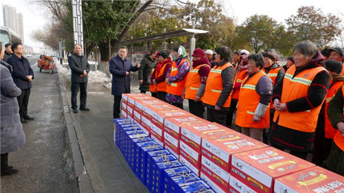 慰問中,皇甫立新、劉國慶一行首先來到新區(qū)“三公開”廣場,慰問堅守一線的環(huán)衛(wèi)工人,向他們致以新春的祝福,并對他們在過去一年里付出的辛勤勞動表示衷心感謝?;矢α⑿轮赋觯荒陙?,環(huán)衛(wèi)工人們起早貪黑、兢兢業(yè)業(yè),為改善居民生活環(huán)境和提升城市形象付出很多心血和汗水,取得了良好效果,城區(qū)環(huán)境和城市面貌有了很大改善,得到了社會各界的一致好評,希望環(huán)衛(wèi)工人們在春節(jié)期間繼續(xù)發(fā)揚奉獻(xiàn)精神,把縣城衛(wèi)生打造的更加干凈、整潔,讓廣大市民和回家過年的群眾能深刻感受到縣城環(huán)境的新變化,過一個干凈舒適愉快的春節(jié)。