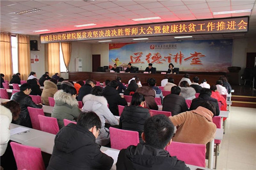 2月16日,鄲城縣婦幼保健院召開脫貧攻堅(jiān)決戰(zhàn)決勝誓師大會(huì)暨健康扶貧工作推進(jìn)會(huì),醫(yī)院領(lǐng)導(dǎo)班子及全體幫扶責(zé)任人參加會(huì)議。
