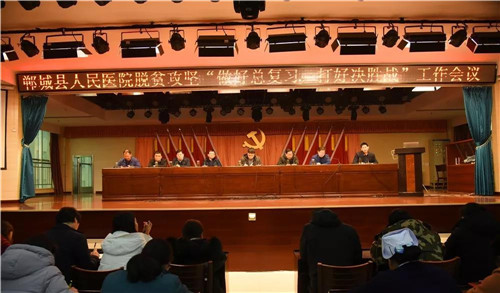 2月15日下午,鄲城縣人民醫(yī)院在門診五樓召開脫貧攻堅“做好總復習,打好決勝戰(zhàn)”工作會議,傳達落實縣衛(wèi)計委扶貧工作會議精神,部署脫貧攻堅工作。鄲城縣人民醫(yī)院院長于健偕全體院領(lǐng)導班子出席會議,院黨委書記高飛主持。健康扶貧辦、醫(yī)保、財務、宣教、醫(yī)政、護理、藥事、醫(yī)療裝備等肩負健康扶貧任務的職能科室負責人、全體護士長、3個幫扶村扶貧隊長及全體扶貧隊員200余人參加會議。