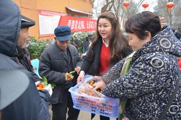 據(jù)了解,此次開展“愛灑敬老院、元宵暖心田”公益活動的發(fā)起人,是剛剛獲得商水縣“道德模范”的愛心人士劉玉英。劉玉英是一名中共黨員,她早年外出務(wù)工,近幾年返鄉(xiāng)后任職某保險公司。經(jīng)常關(guān)愛留守兒童和老人、對親戚鄰居慷慨相助,她還加入了“周口義工”團隊,踴躍參加當?shù)亍笆∵\會”“殘運會”義務(wù)服務(wù)活動?!耙粋€人的愛心是有限的,這次自愿報名參加人員都是愛心企業(yè)家,盡管他們工作都很忙,一聽說要去敬老院給老人送元宵都親自來了?!眲⒂裼⒔榻B說,“我們帶來了精心挑選的6件黑芝麻水果元宵、4件蘋果、4件砂糖橘、2件柚子、4件香蕉、2件雪梨,還有市區(qū)‘亨達果品’水果店老板獻愛心捐贈的一箱西瓜,盡管這些東西價值只有1000多元,但畢竟是大家的一片心意!”