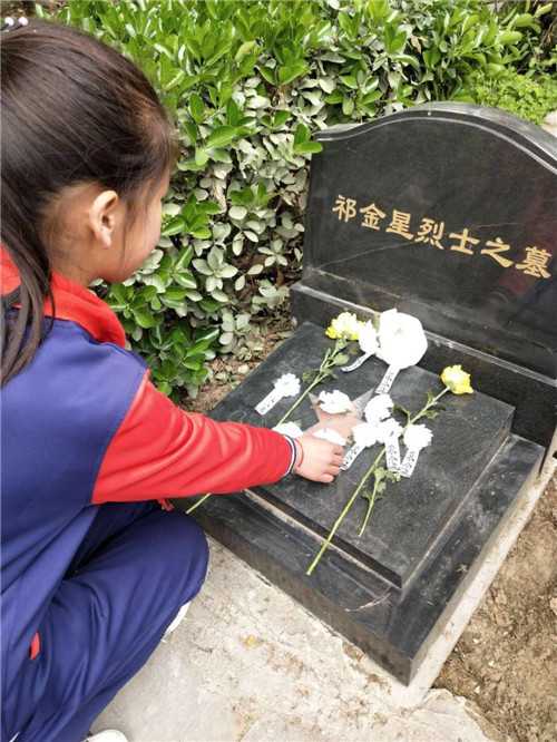活動中,全體人員懷著崇敬的心情向英雄墓碑敬獻了小白花。