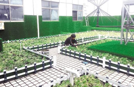 開發(fā)區(qū)積極推進樓頂綠化工程,實現(xiàn)了防治大氣污染、美化環(huán)境、隔熱降溫的效果。圖為開發(fā)區(qū)綜合辦公大樓上鋪種的佛甲草。