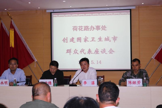 5月14日晚8時(shí),區(qū)長李湛主持召開荷花路辦事處創(chuàng)建國家衛(wèi)生城市群眾代表座談會。區(qū)人大黨組成員任世德、區(qū)檢察院檢察長郭煜、區(qū)武裝部長陳繼芳出席。荷花辦科級干部、社區(qū)書記、轄區(qū)黨員和群眾代表100多人參加。