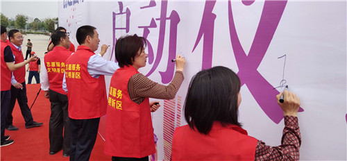 攜手共建衛(wèi)生城,齊心同育文明花。5月19日上午,周口市城鄉(xiāng)一體化示范區(qū)(以下簡稱示范區(qū))創(chuàng)建國家衛(wèi)生城市志愿者服務(wù)活動正式啟動。市創(chuàng)衛(wèi)辦副主任、市衛(wèi)健委主任金玉貞,共青團周口市委書記王春華,示范區(qū)黨工委書記閆立超、管委會主任張建黨等全體班子成員出席儀式。全區(qū)3600名青年志愿者參加活動。