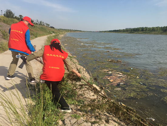 雖然當(dāng)天氣溫創(chuàng)下我市入夏以來(lái)的新高,但志愿者們?nèi)詼?zhǔn)時(shí)來(lái)到集合地點(diǎn)開(kāi)展巡訪活動(dòng)?;顒?dòng)開(kāi)始后,志愿者們來(lái)到了沙潁河風(fēng)景區(qū)的鐵路風(fēng)情廣場(chǎng)東側(cè),發(fā)現(xiàn)這里的一處電力井蓋破損嚴(yán)重。沒(méi)過(guò)多久,志愿者們發(fā)現(xiàn)附近河段中有許多水草和漂浮物。由于河邊濕滑,又沒(méi)有清理工具,志愿者們?cè)诖_保自身安全的前提下,將部分漂浮物撈到岸邊并放進(jìn)了垃圾箱中。由于水草和漂浮物太多,志愿者們的努力顯得杯水車薪。