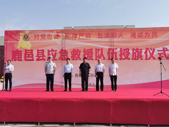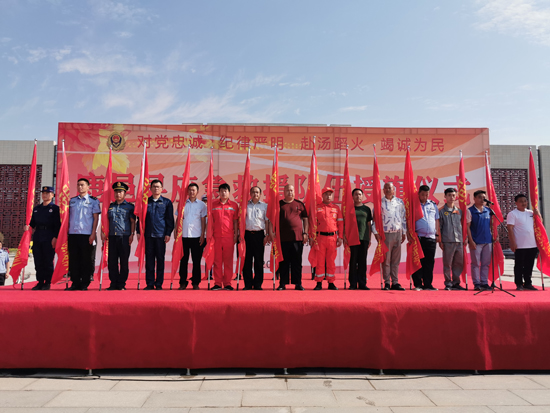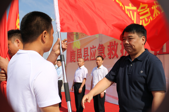 鹿邑:陸志杰為15支專、兼職應急救援隊授旗