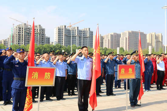 5月30日上午,鹿邑縣在縣文化中心廣場舉行應急救援隊授旗宣誓儀式,縣委常委、常務副縣長陸志杰現(xiàn)場為全縣新整合的15支專、兼職應急救援隊伍授旗,各應急救援隊伍在推選代表的帶領下,共同舉起右手進行了莊嚴的宣誓儀式。