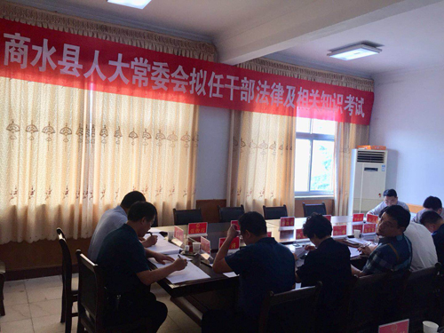 6月18日,商水縣人大常委會組織縣政府擬提請任命的16名干部進行法律及相關(guān)知識考試??h人大常委會領(lǐng)導李德來、邵超、李峰、楊新權(quán)、張俊霞現(xiàn)場監(jiān)考,對參加考試的同志提出嚴格應(yīng)試要求。