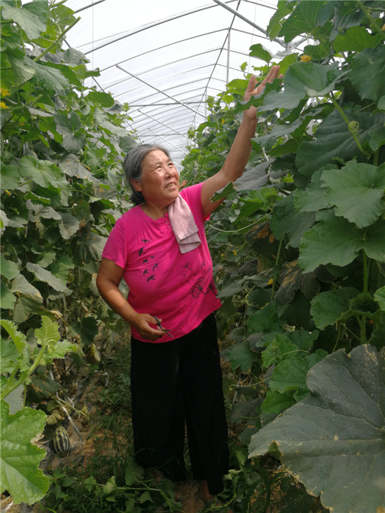 劉莊行政村脫貧戶鄧先英,今年已經(jīng)62歲了,但他每天第一個早早來到大棚,剪枝、拔草,從不落后別人。“雖然脫貧了,但我們不能等政府來救濟,要學(xué)會自力更生,好日子還要靠自己干出來!”