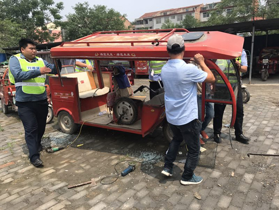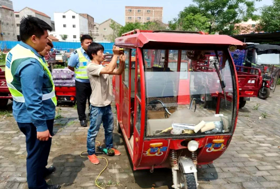 鄲城:切割41輛非法營(yíng)運(yùn)三輪車(chē)