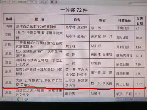據(jù)介紹,本屆河南新聞獎獲獎作品具有“把握時代脈搏 謳歌時代精神”“反映重大主題 積極服務(wù)大局”“講述中國故事 彰顯主流價值”等特點,主題深刻、事實準(zhǔn)確、文風(fēng)生動、表現(xiàn)新穎,充分反映我省新聞戰(zhàn)線積極宣傳報道黨的十八大以來我省發(fā)展的歷史成就、歷史變革,報道我省各行各業(yè)改革開放的豐碩成果和感人事跡,特別是聚焦打贏精準(zhǔn)扶貧攻堅戰(zhàn),形成宣傳的強大聲勢。作品堅持正確的輿論導(dǎo)向、唱響主旋律、大力宣傳社會主義核心價值觀,為新時代中原更加出彩提供強有力的輿論支撐和良好的輿論氛圍?!短怠拔屦B(yǎng)模式”讓特困養(yǎng)老實現(xiàn)“菜單式”》具有“重大題材”“重大影響”“重大意義”等特點,經(jīng)過專家層層評審,最終在眾多參評作品中脫穎而出,一舉奪得了河南新聞獎一等獎。