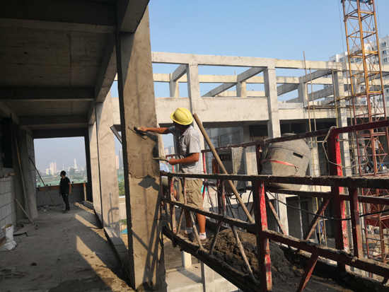 當(dāng)日上午,記者在施工現(xiàn)場看到,雖然天氣炎熱,但是每項工程都進展有序,部分已經(jīng)封頂?shù)臉欠空谶M行后續(xù)施工,未封頂?shù)臉欠恳舱诰o張施工中,整個施工現(xiàn)場電鉆聲、切割聲此起彼伏,一派熱烈的施工景象。