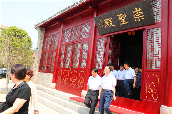 調(diào)研組一行先后到黌學(xué)堂、崇圣殿,眾妙之門牌坊、明道宮迎禧殿、玄元殿、升仙臺以及太清宮太極殿、隱山遺址、先天太后之贊碑等地,就文物古跡保護管理、文物執(zhí)法情況進行實地檢查。檢查組希望鹿邑縣進一步重視和發(fā)展文化產(chǎn)業(yè),積極推進歷史文化名城發(fā)展戰(zhàn)略,完善產(chǎn)業(yè)發(fā)展政策,加大投入和資源整合力度,創(chuàng)新產(chǎn)業(yè)發(fā)展觀念和模式,不斷提升文化產(chǎn)業(yè)發(fā)展水平。