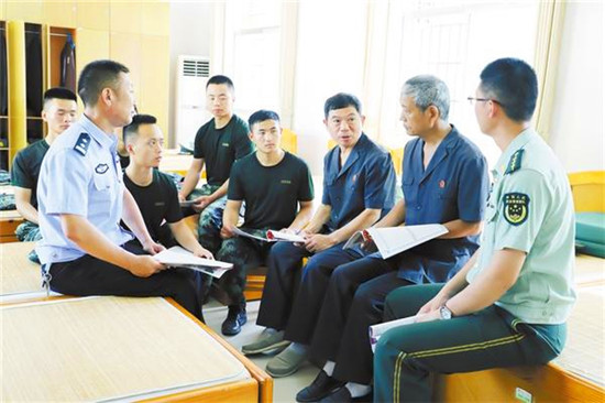 7月26日上午,太康縣人民法院的法官們來(lái)到縣武警中隊(duì),為武警官兵提供法律咨詢(xún)和服務(wù)活動(dòng),解決他們?cè)谌粘9ぷ鳌⑸钪杏龅降姆蓡?wèn)題,并向他們贈(zèng)送《軍人維權(quán)指南》《法律小常識(shí)》等有關(guān)法律書(shū)籍及慰問(wèn)品,受到了熱烈歡迎。圖為該院法官向武警官兵講解法律常識(shí)。