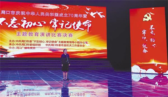 開發(fā)區(qū)積極響應(yīng)號(hào)召,組織人員參加全市慶祝中華人民共和國(guó)成立70周年暨“不忘初心、牢記使命”主題教育演講比賽。開發(fā)區(qū)機(jī)關(guān)第一黨支部黨員李媛媛經(jīng)過激烈角逐,順利進(jìn)入決賽。記者 王泉林 攝