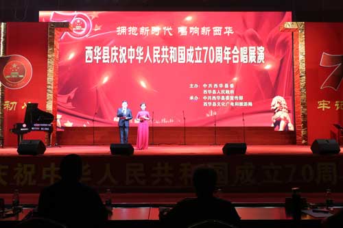 9月23日和24日晚,由西華縣委、縣政府主辦,縣委宣傳部、縣文化廣電和旅游局承辦的“擁抱新時(shí)代·唱響新西華”慶祝中華人民共和國(guó)成立70周年合唱展演預(yù)賽在該縣體育館舉行,林鴻嘉、程維崢、周曉燕、郭峰、陳秉生、楊鳳臣、張曉偉、趙增先等縣處級(jí)領(lǐng)導(dǎo)干部與來(lái)自全縣各屆的群眾共同觀看演出。